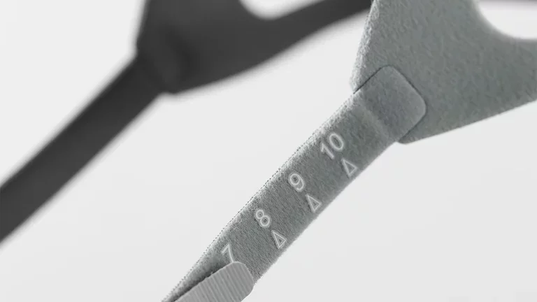 Made from soft, lightweight and seamless fabric, MC1 features a minimalist headgear that facilitates the adjustment thanks to its innovative landmarks system. The graduations simplify daily use of the mask, as the patient can memorize the settings predefined by the homecare provider and quickly find the right setting without having to constantly readjust. The majority of patients appreciate and recognize the benefits of this feature.¹