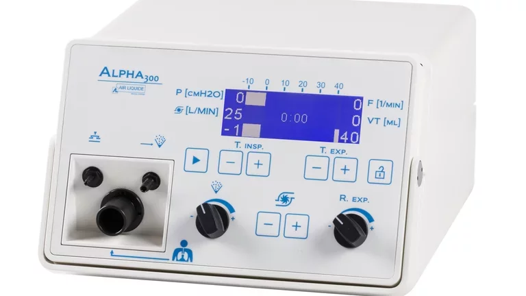 Intended for physiotherapists, Alpha 300 is a versatile tool to prevent respiratory difficulties. It supplies a positive pressure during inspiration and switches to expiration as soon as the pressure setting has been reached.