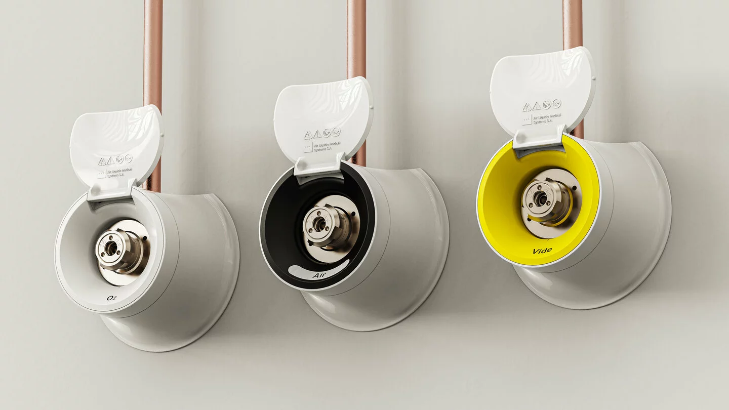 The BM gas terminal, designed to meet the French NF standard, is used to make quick connections to the medical gas network. It enables easy availability of the medical gases essential for patient care and to the medical vacuum for airway clearance and surgical drainage.